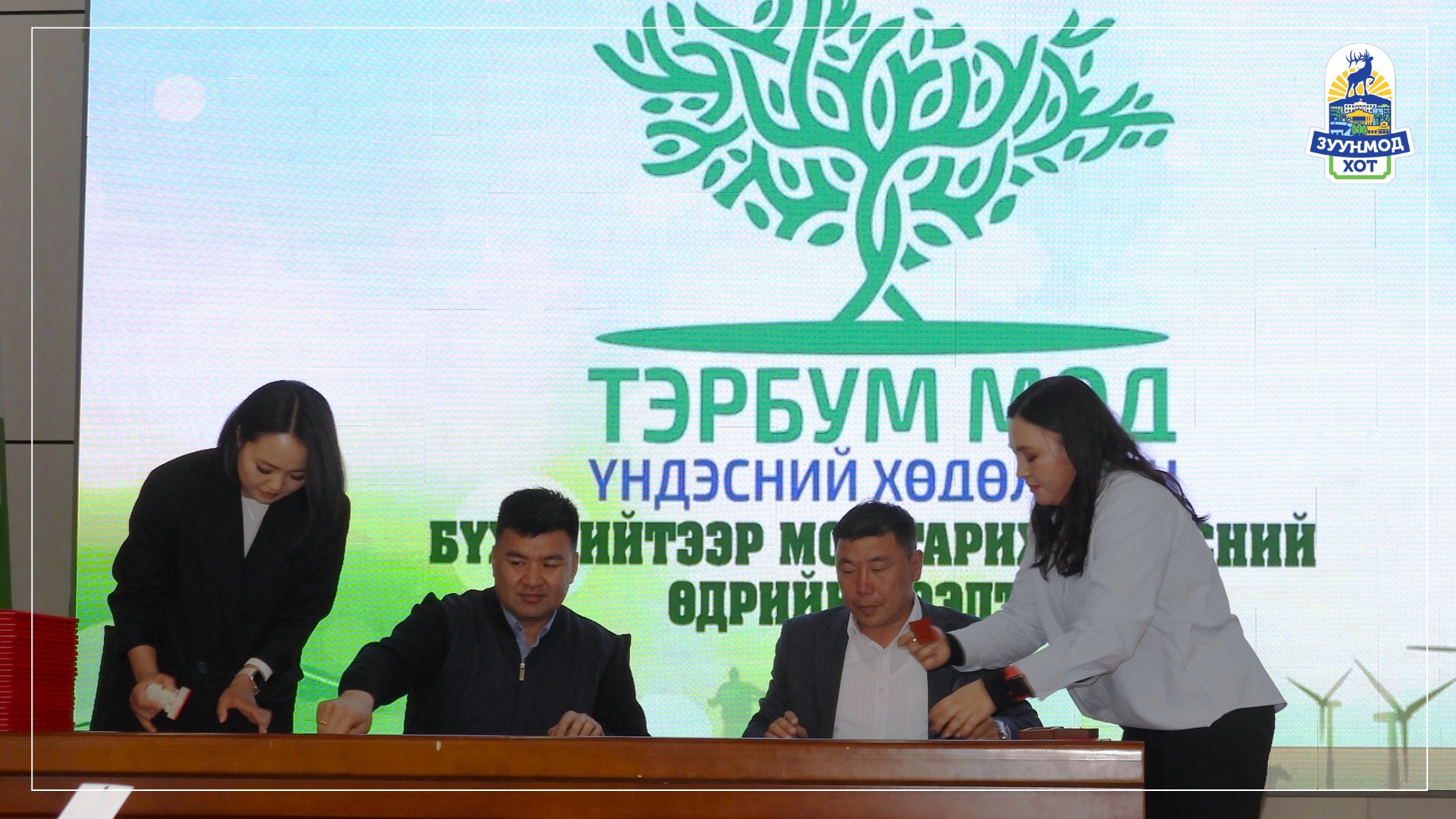 Төв Аймгийн Засаг дарга Л.Төмөрчөдөр “Тэрбум мод” үндэсний хөдөлгөөнийг сум, орон нутагтаа өрнүүлэх, тухайн төсвийн жилд улс, орон нутгийн төсвийн хөрөнгө оруулалт, орон нутгийн хөгжлийн сангийн тодорхой хувийн санхүүжилтийг ой мод, ойн санг нэмэгдүүлэх, хамгаалах, мод тарих усжуулалт, бордоо, хөрс хамгаалал, ногоон байгууламжийг нэмэгдүүлэхэд зориулан төлөвлөж, аймгийн хэмжээнд мод ургуулах, ойн санг нэмэгдүүлэх үйлсэд сэтгэл, зүтгэлээ дайчлан ажиллахыг үүрэг болгож Зуунмод сумын Засаг дарга Б.Хатанбаатар болон бусад сумдын Засаг дарга нартай “Хариуцлагын гэрээ” байгууллаа.
